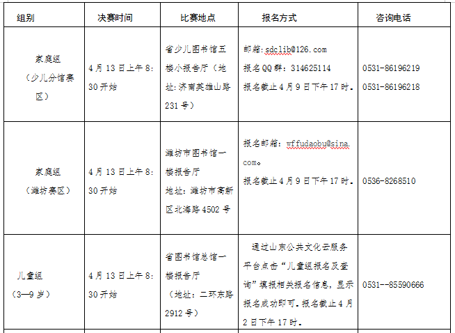 山东省图书馆少儿分馆赛区报名方式: