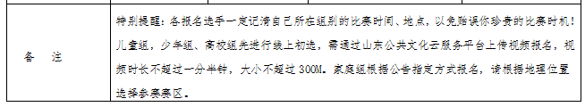 第十四届全省读书朗诵大赛儿童组、少年组、高校组网上初选活动由山东省文化和旅游厅主办,山东省图书馆联合全省各市图书馆承办。参赛作品体裁为诗歌、散文、小说等,内容积极健康向上。特别注意儿童组、少年组、高校组实行线上报名初选,线下决赛的形式。家庭组直接报名至分赛区,详细报名方式如下。
