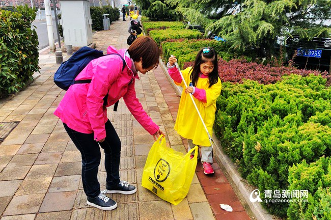 青岛新闻网4月15日讯(记者 朱颖)清捡垃圾、传播环保理念、倡行文明……4月13日,来自基隆路小学2018级五班的同学们过了个别有意义的周末。小同学们不但亲身投入到城市清洁中,还向市民做了环保文明宣传。