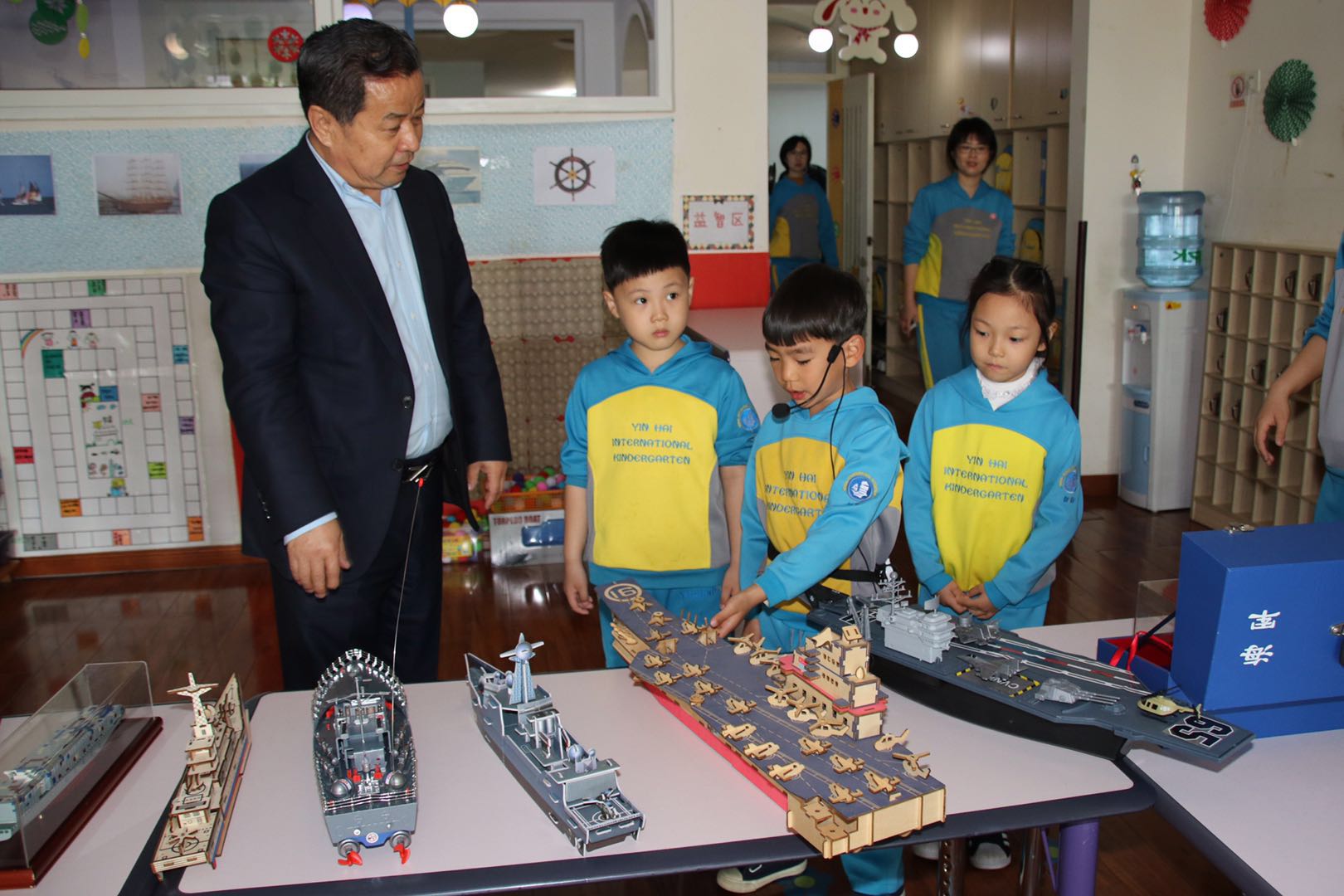 考察团走进银海幼儿园班级和户外活动课堂,深入了解学习了各个班级的室内室外教学活动,就环境创设、课程实施、队伍建设,特别是两地同步课堂等方面进行座谈交流。