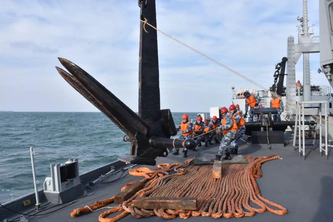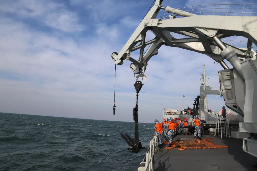该支队长兴岛船冒着风浪和近-10℃的低温严寒,驶至目标海域进行布撤作业场训练。甲板上,官兵们经几小时的连续奋战,成功将定位锚收回。