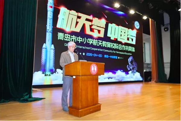 最后,青岛市教育局葛砚荀副处长发表了讲话。葛处长表示,中国航天人和中国航天事业,本身就是一部激励广大青少年崇尚科学、报效祖国的最丰富的成长“教材”,希望老师们同学们能够学好这本活教材,用好这本活教材,早励志,立大志,尽快成长为建设国家的栋梁!葛处长对“青岛市中小学航天教育校际合作共同体”和“未来航天人才培养计划”给予了美好祝愿。
