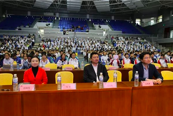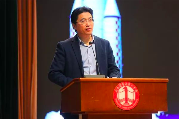 青岛一中王先军校长致欢迎辞。王校长作为东道主向到来的航空航天专家、市教育局领导、三十所中小学校长与同学们表示了热烈的欢迎和诚挚的问候。王校长表示,青岛一中愿通过“校际合作共同体”与“未来航天人才”培养计划,在搭建青岛航空航天教育平台、构建航空航天人才梯队培养机制、激发青年人树立献身祖国航空事业的崇高理想、弘扬航天精神等方面,做出一中承诺,贡献一中智慧,献上一中力量。