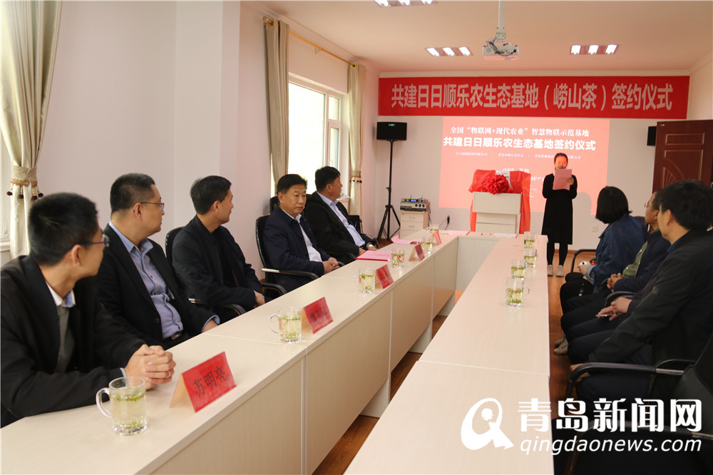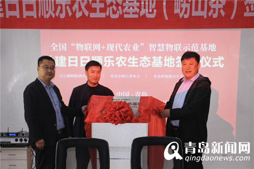 当天上午,在位于王哥庄街道囤山社区的碧海蓝田生态农业园里,由海尔集团日日顺物联网有限公司和碧海蓝田生态农业有限公司共同举办的以“精准扶贫乡村振兴”为主题的“日日顺乐农生态基地”签约揭牌仪式正在进行,乐农生态基地作为全国“物联网+现代农业”智慧物联示范基地,与王哥庄的龙头茶企、生态茶园进行无缝隙对接,双方将发挥各自优势就共建崂山茶生态基地及农产品深加工、科学种植、生产及种植管理模式研究等进行交流,日日顺利用自身社群用户资源,搭建农村社群生态场景商务平台,把高品质、无污染的正宗崂山茶产品搬到全国消费者的餐桌,助力城乡互联互通,不断提升崂山茶的品牌知名度和竞争力,进一步促进崂山茶产业的振兴发展。