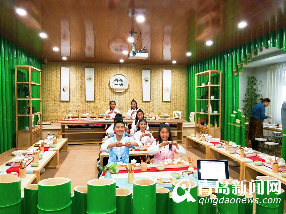 今年的她已是一名“高级茶艺师”,一年的时间,她坚持研与学结合,广泛查阅历史资料,对崂山茶文化脉络进行梳理,多次外出学习传统茶文化,投资建设了“道茗斟”茶舍,“我们开设了茶艺课程、DIY花茶制作和果子课程等系列体验项目,以用于推广崂山茶文化”。鲁琦介绍说,为让崂山茶文化进校园,使孩子们了解本土特色产业,从学茶中传承崂山茶文化,她与崂山区东泰小学共同开发少儿茶艺校外实践课程,将茶礼融入到校园德育工作中,着力培养未成年人的文化素养。“我根据崂山的地理文化、校园文化、学习条件等实际架构校园茶文化体系,设置了茶史了解、茶类识别、茶叶泡饮、茶艺体验实操的课程项目,想带领王哥庄的学生了解茶的文化史、崂山茶分类及特点、习茶礼仪及民族饮茶习俗等文化。”鲁琦说。