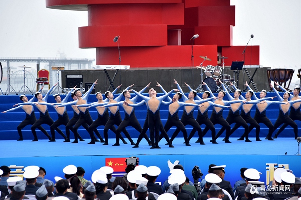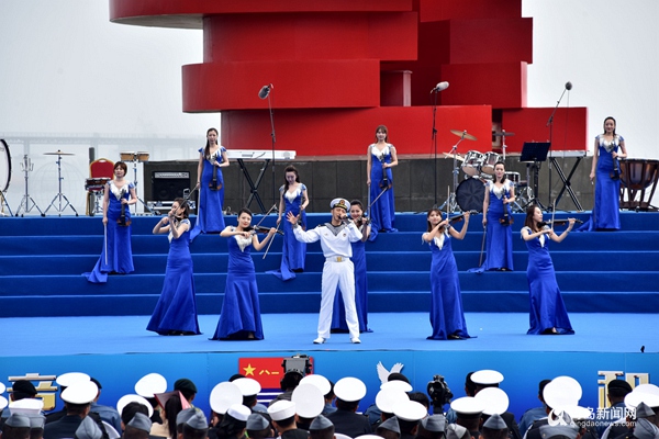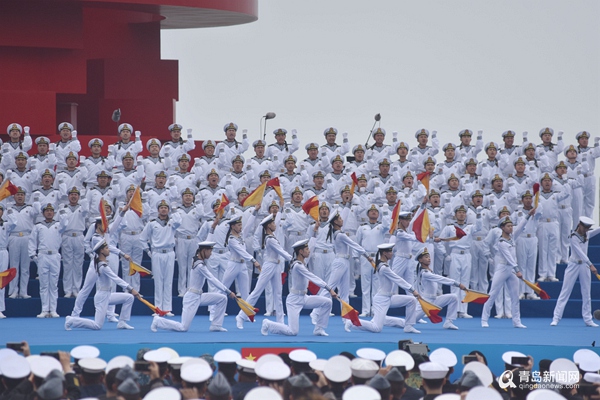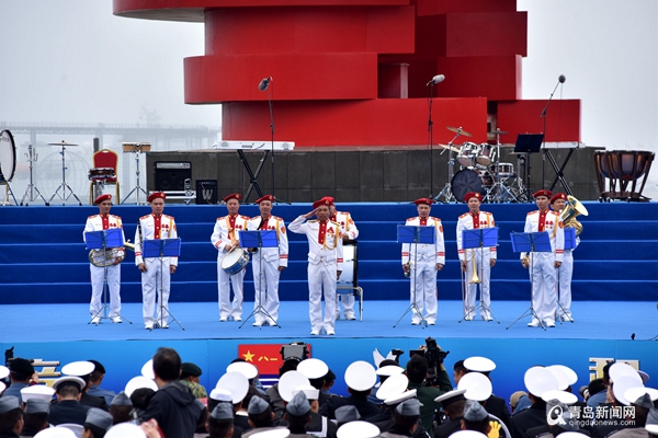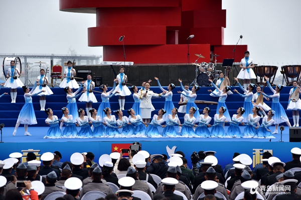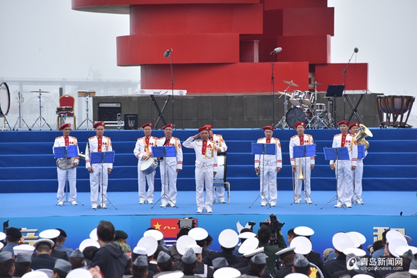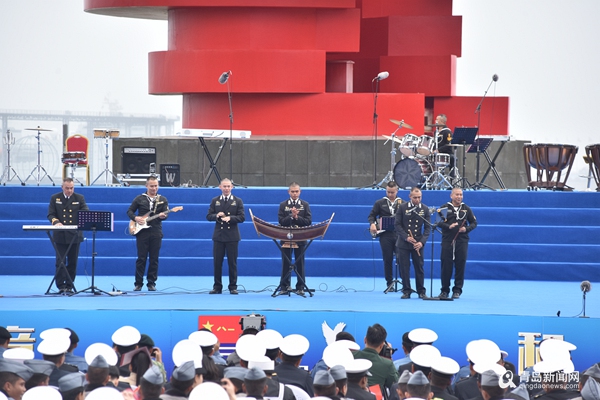 青岛新闻网4月22日讯(记者 陈志伟)今天下午,庆祝中国海军成立70周年中外海军联合军乐展示在青岛五四广场举行。