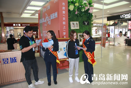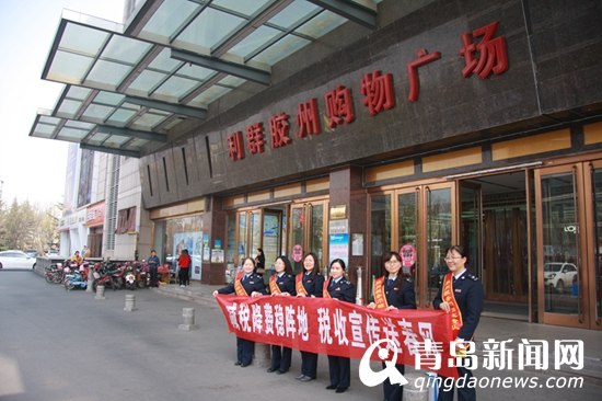 青岛新闻网4月25日讯(通讯员 王磊)巾帼建功新时代,人间四月别样红。近期,胶州市税务局巾帼税收宣传队利用繁忙的工作间隙,积极发挥减税降费主力宣传作用,开展“四进四讲”税收宣传活动,她们走进商场、走进景区、走进售楼处、走进建筑工地,身披红色绶带的税务蓝,将减税降费的春风播撒至千家万户。