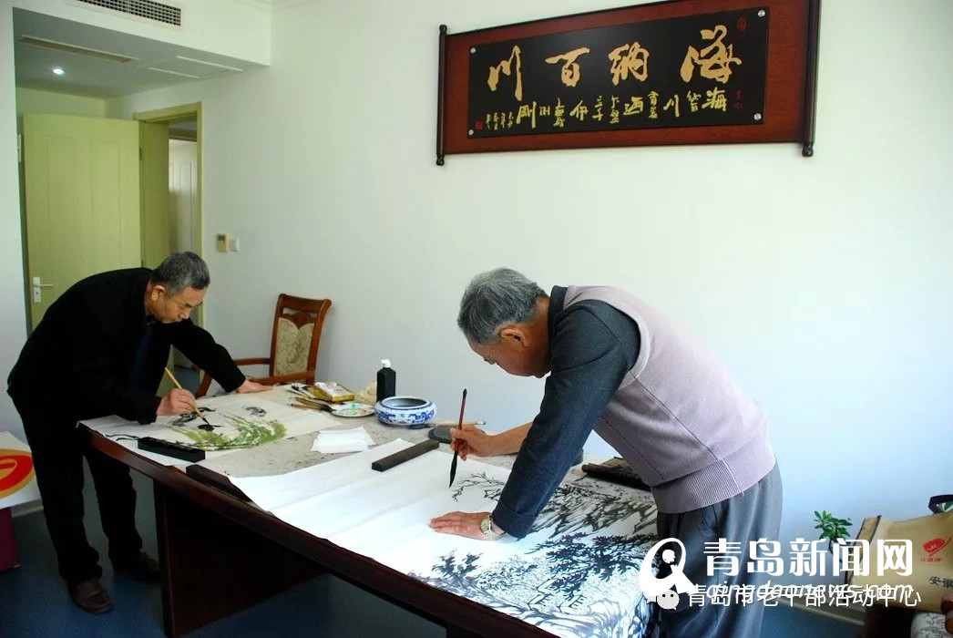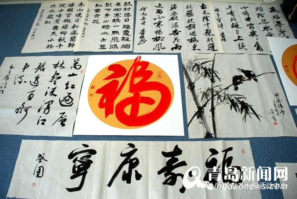 书画现场,老领导们与青岛枫林书画社成员欢聚一堂,展纸泼墨、挥毫创作,以讴歌新中国、赞美新时代为主题,共同创作了30余幅书画作品,表达了对新中国成立70周年的美好祝福。枫林书画社顾问崔锡柱、姜岱积提前准备了作品与大家交流,老同志们笑意冉冉,分享着创作心得和感想,同时也对活动中心积极开展老干部文化活动、搭建老干部书画交流平台给予了高度评价。