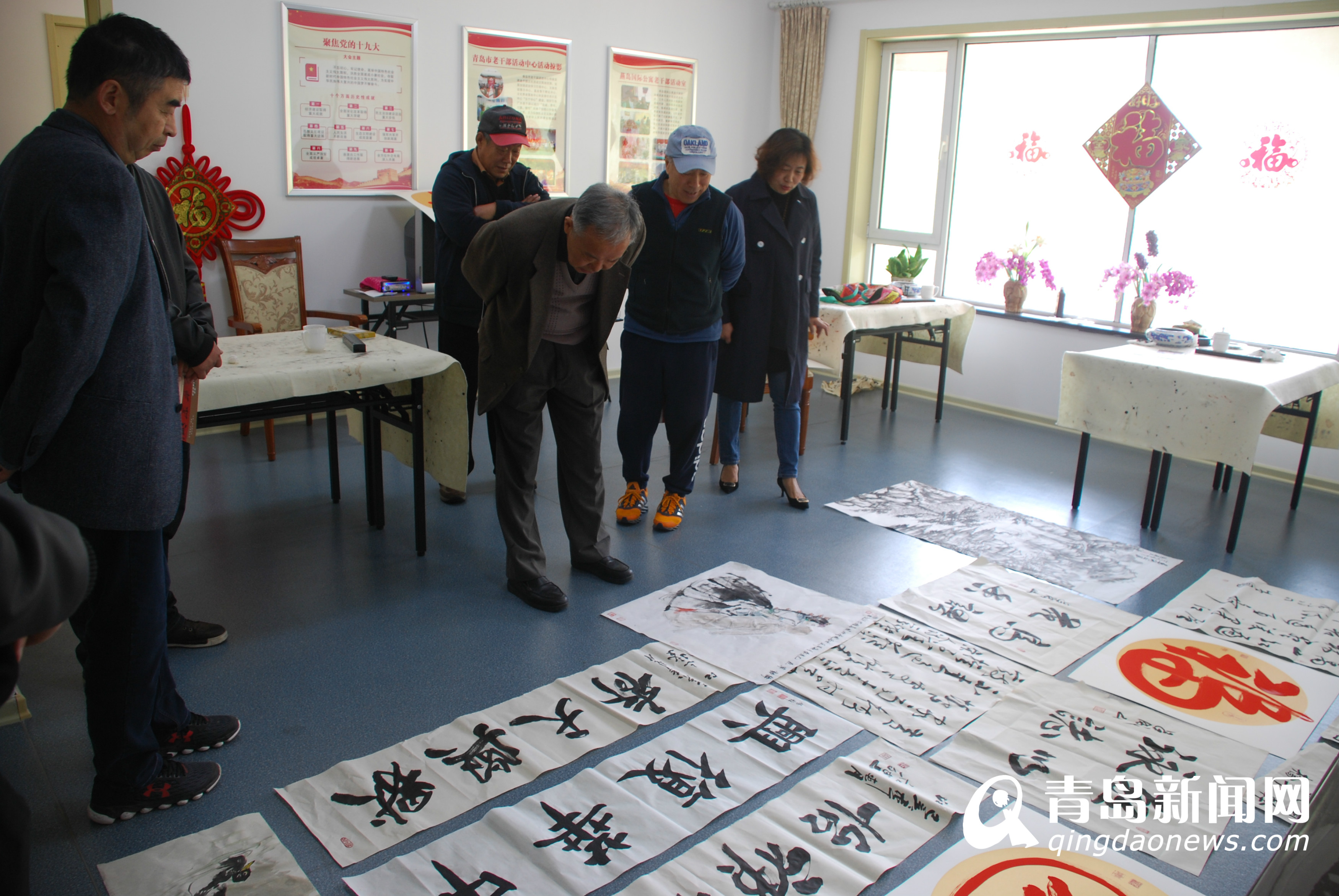 青岛新闻网4月29日讯 4月26日上午,青岛市老干部活动中心在燕岛国际公寓老干部活动室举办了“礼赞新中国奋进新时代”老干部书画交流活动,副市级老领导殷康生、于锦初、王奎珍出席活动,市老干部活动中心副主任姜爽、青岛枫林书画社成员李皓、潘盛国、吕海洋、吕成山、江亦斌、倪汉婴、谭舜哲参加了活动。