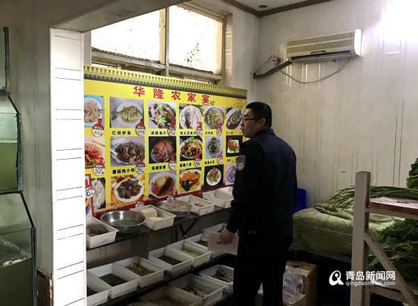 长岭社区的韵馨源茶场内,食品安全管理人无名、食品进货来源不明,从业人员的健康证也没有悬挂。此次执法过程中,常青苑酒店算是店面最干净的一家,但是菜品标价不规范,甚至是不标价的问题。王哥庄市场管理所执法员王林表示:“商家应该在点菜区明确标明菜品的计量单位,即是一份、一斤,还是一盘的价格。”