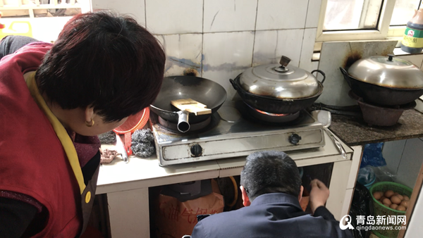 随后,联合执法队又来到返岭社区。这家正在营业的华隆农家宴,各类证件齐全,厨卫条件基本合格,菜品也做好了明码标价,但是厨房的油烟换气扇乌黑油腻,防火栓也布满了灰尘。执法人员告知其要定期清理各类设施,保障使用安全。该店旁边的山海渔村农家宴则存在厨房燃气灶使用不规范的问题。