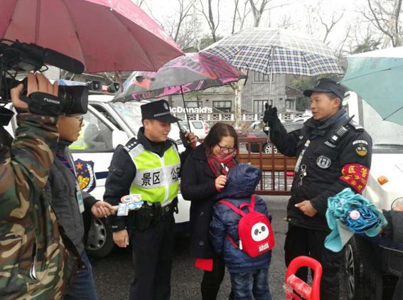 (今年4月,来自江苏的李女士与孩子在断桥边走散,在民警帮助下团聚。岳庙派出所供图)