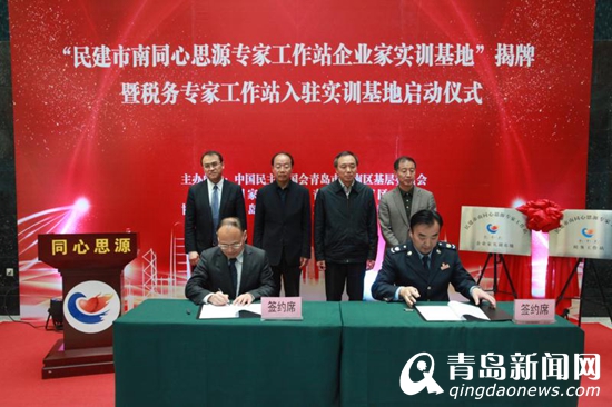 青岛新闻网4月30日讯(通讯员 魏义 政刘洋)为了更好地落实减税降费各项政策,让纳税人享受税收红利,2019年4月30日,市南区税务局、民建市南区基层委员会联合举办了“民建市南同心思源专家工作站企业家实训基地”揭牌暨“税务专家工作站入驻实训基地”启动仪式,通过税务部门与民主党派的合作,搭建起政府政策和民营企业间的桥梁和纽带,促进经济健康发展。