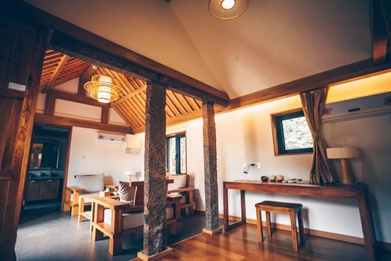 民宿共有23套院落,客房均由原村落民居改造而成,斑驳的青石墙、裸露的木房梁、石板屋顶,精心处理有条件的保留原始结构,与原村落融于一体;院落以村落传统福文化、吉祥为核心出发点,以”福、禄、寿、喜、学”五大主题展开具体营造。所有房型均为单独院落,有一房、两房、三房可供选择,无论是情侣出行、朋友聚会还是家庭同游,总有一个院落能满足你。