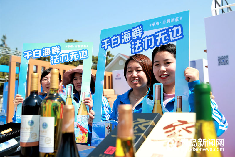 崂矿的矿泉水玩偶也成了大家争相合照的明星。