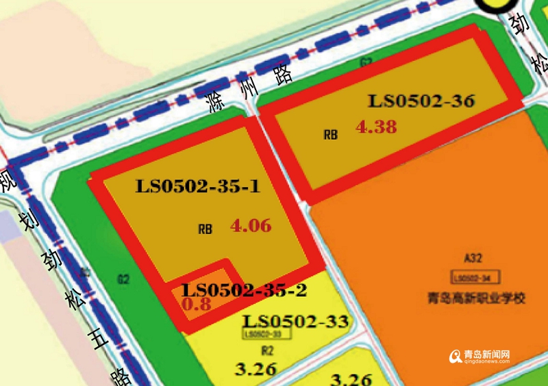 2016年5月,崂山区政府启动崂山区控规修编,浮山新区(崂山片区)LS0502-35、LS0502-36、LS0502-37-1、LS0502-37-2地块北至滁州路、西至劲松五路、东至劲松七路、南侧为高职校,总用地面积7.35公顷。LS0501-14地块北至同兴路、南至同安路、西至劲松五路、东侧为青岛印象畔小区,总用地面积3.88公顷。