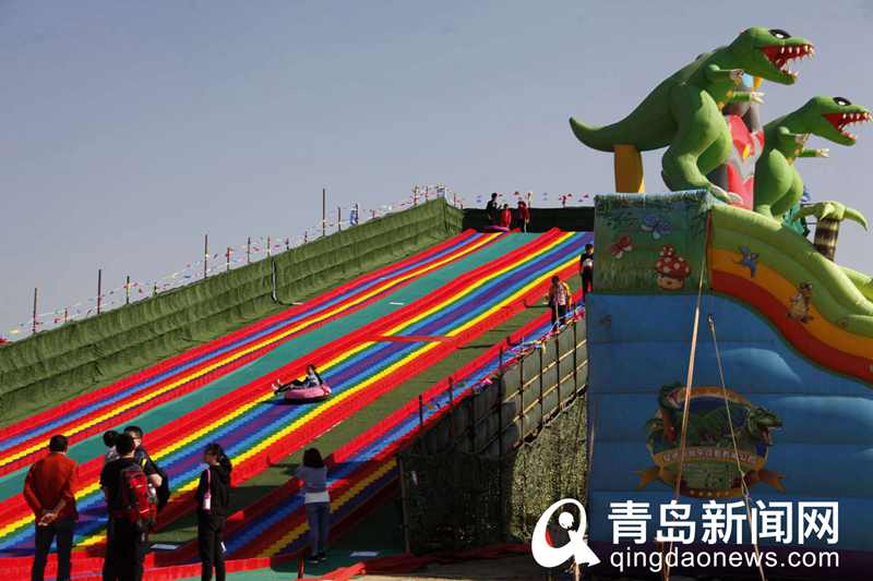 在‘童梦香村’四季亲子主题乐园的户外娱乐设施处,记者看到,虽然现在体验设施还不多,但丝毫不影响市民游客参与的热情,“我们已经在这儿完了好大一会了,从上面滑下来不管是视觉上还是感受上都很不错,既好玩又刺激。”正在带孩子体验彩虹滑梯的西海岸市民薛先生说。