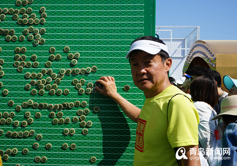 马拉松开跑前的小小仪式感——孙力川也来寻找自己的专属瓶盖留念。