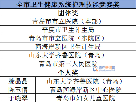 青岛新闻网5月11日讯 (记者张萍)在第108个“5.12”国际护士节前夕,青岛市卫生健康委员会在解放军九七一医院举行主题为“关注护理 关爱护士 关怀患者”庆祝表彰活动。代欣广等7人获评“第八届青岛市李桂美突出奉献护士奖”,徐毅君等10人荣获“深化和延伸护理服务创新十大案例奖”,谷桂芬等10人荣获“优秀护士长奖”,车德红等10人荣获“优秀专科护士奖”,滕晶晶等3人和青岛市市立医院(本部)等7家医院获得“全市卫生健康系统护理技能竞赛奖”,杜忠军等6人和青大附院(西海岸)等6家医院获得“南丁格尔男护士技能大赛奖”,贾瑞颖等4人和青岛市市立医疗集团(东部)等2家医院获得“年轻护士技能大赛奖”。现场还颁发了“天使风采”微视频优秀作品奖,由西海岸新区中心医院等10家医院获得。