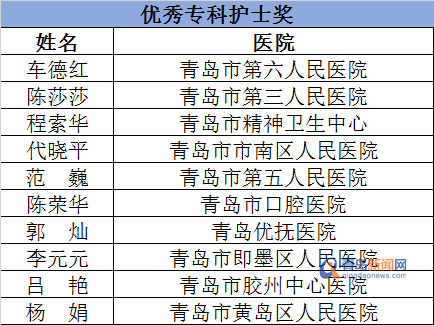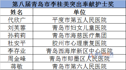 “第八届青岛市李桂美突出奉献护士奖”名单。