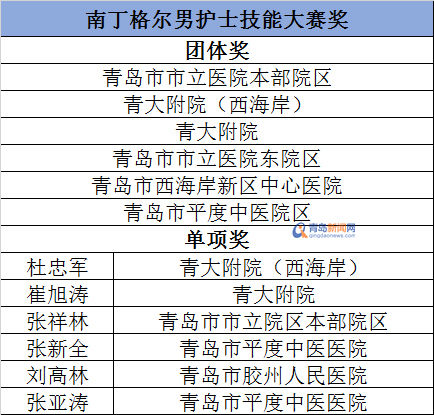 “南丁格尔男护士技能大赛奖”名单。