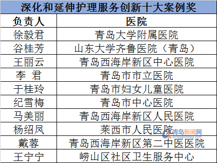 “深化和延伸护理服务创新十大案例奖”名单。