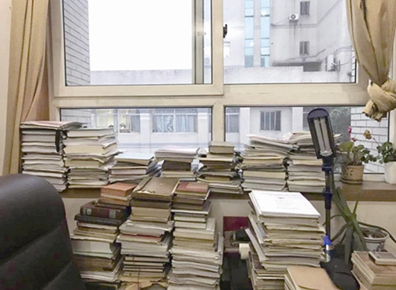 鲜学福办公桌堆满书籍 重庆大学供图 华龙网发