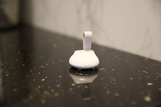 为了防止水龙头忘关造成的水蔓延问题,在洗手台还有一个水浸传感器,离地缝隙只有2MM,一旦超过这个位置会立马报警,手机也会收到提醒。