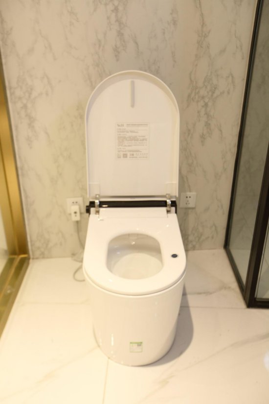 对了,浴室内还有一台智能马桶,靠近时马桶盖会自动掀起,同时触发通风扇,如厕结束,还有智能冲洗功能。