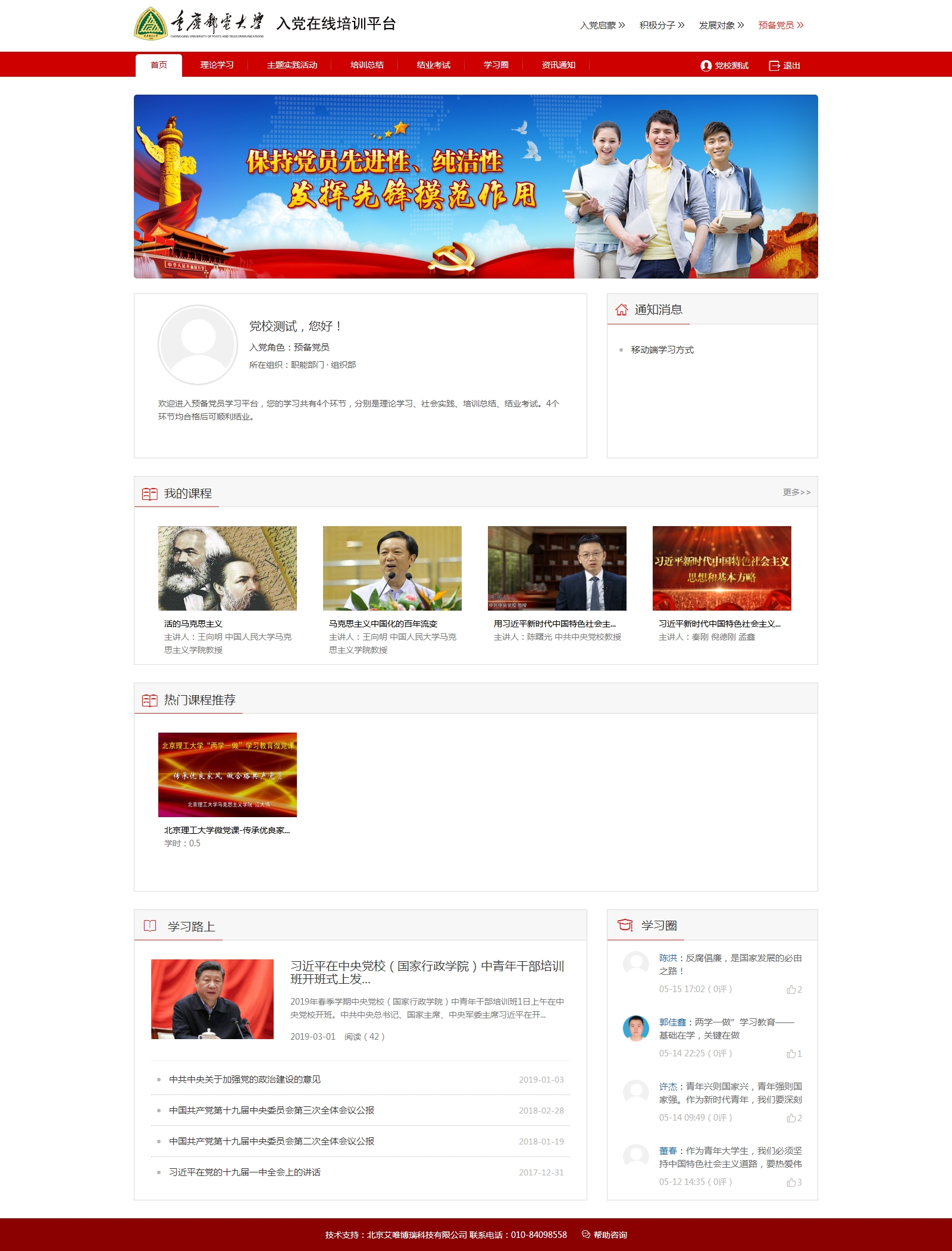 除此以外,学校还搭建了入党教育培训管理的云平台,通过数据共享、课程管理、考试监督等方法,打破传统教学时空限制,支持学员使用各类终端设备在任何时间、地点进行在线学习,解决党课教学形式单一、师资力量薄弱、考核不够规范、效果不够均衡等问题,促进线上理论与线下实践有机融合,实现入党教育培训全过程信息化管理。