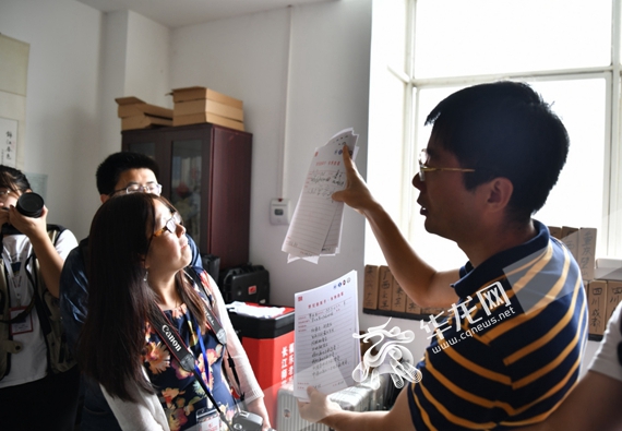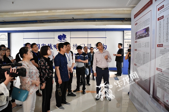长江师范学院党委常委、宣传部部长盛全生为记者们介绍学校科研创新平台周涛摄