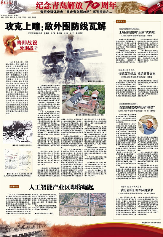 抚今追昔、展望未来。不忘初心、牢记使命。为铭记历史、传承青岛这片热土的红色基因,青岛日报社、青岛报业传媒集团联合中共青岛市委党史研究院自今日起至6月2日连续推出“纪念青岛解放70周年——青报全媒体记者‘重走青岛解放路’”大型全媒体报道。青报全媒体记者兵分三路,沿着当年人民解放军的进军路线实地全景采访,回顾那段波澜壮阔的历史,重温激情燃烧的岁月,同时也展现昔日战场的巨大变化、崭新风貌,以及当地干部群众传承红色基因、奋斗新时代的新作为、新风采。