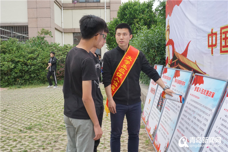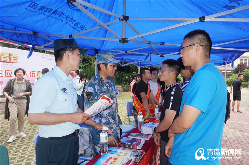 青岛新闻网5月31日讯 (记者 李金燕 通讯员 王涛 刘春弟)5月30日上午,市南区征兵办工作人员来到中国海洋大学崂山校区,开展以“军营逐梦青春无悔”为主题的征兵宣传活动。此次活动,主要是使广大师生了解参军入伍政策,激发广大适龄特别是高学历青年参军报国热情,营造全社会重视、关心和支持征兵工作的良好氛围。