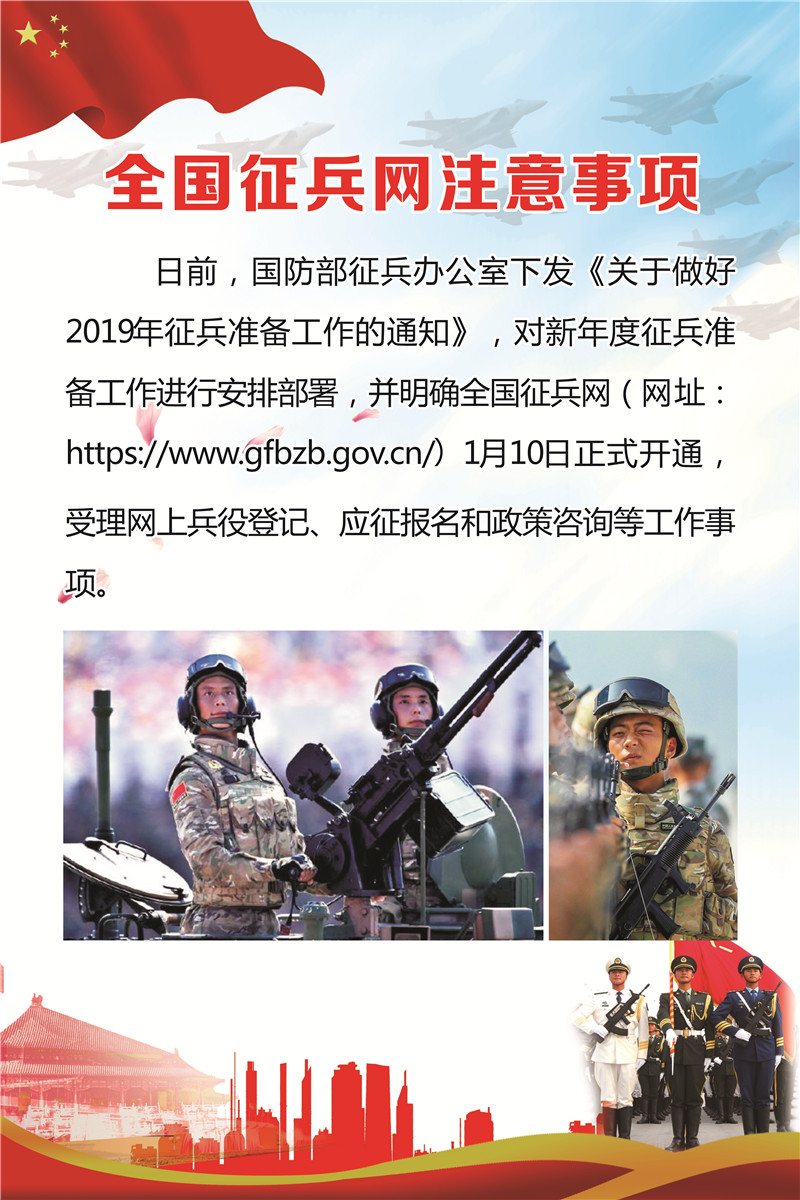 据了解,今年,报名截止时间为8月5日。男兵参军入伍流程为:①兵役登记②应征报名③初检初考④预征管理⑤体检、政治考核⑥预定新兵⑦批准入伍。女兵参军入伍流程为:①网上报名②确定初选对象③初检初考④体格检查⑤政治考核⑥审批定兵。具体流程请登录全国征兵网()操作。