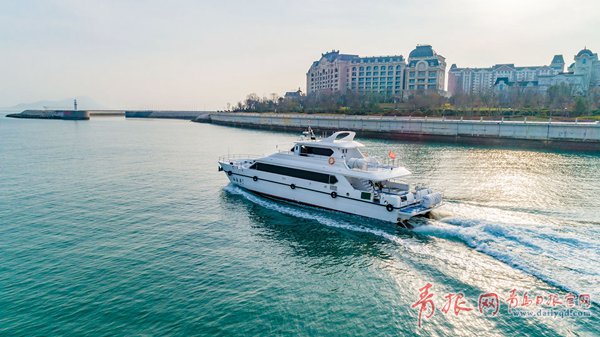 ▲青岛“西海岸号”旅游客船从星光岛起航。