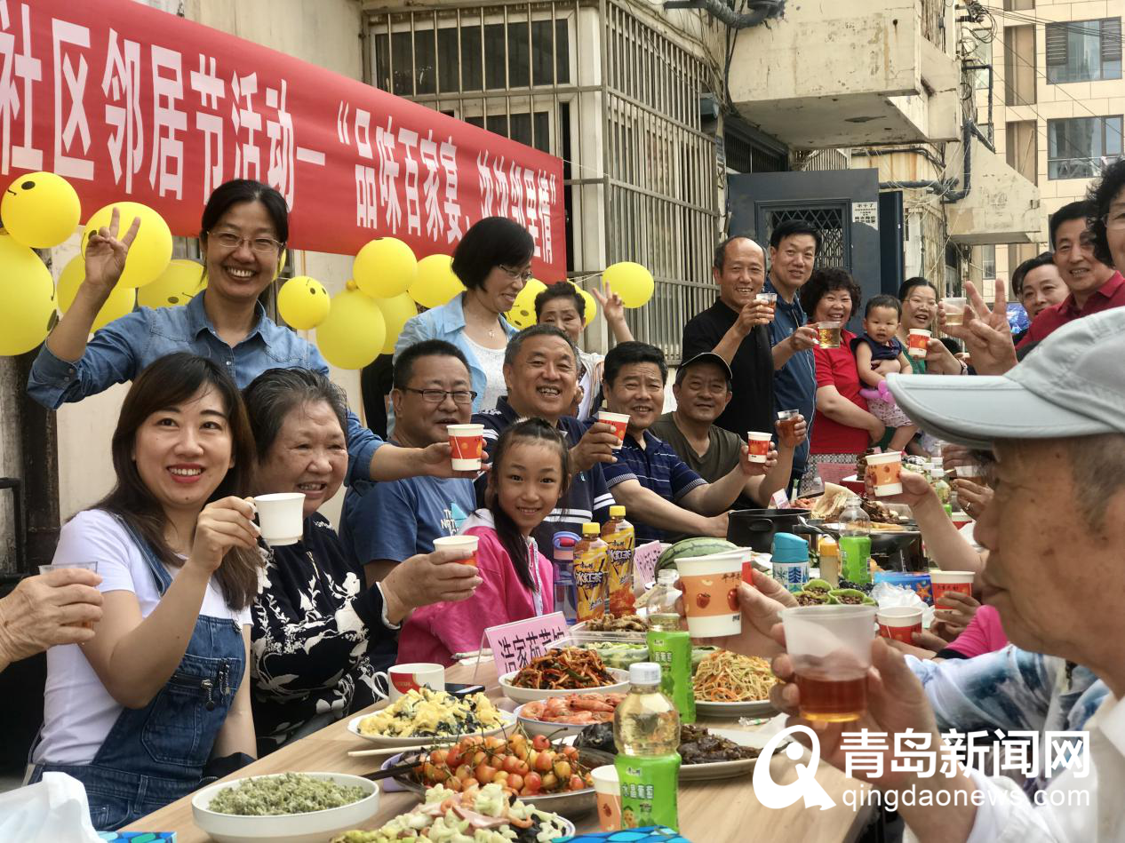 青岛新闻网6月3日讯(实习记者 刘茹霞)作为青岛市2019年“崇德尚礼邻里一家”邻居节系列活动之一,6月2日,市北区镇江路街道汉口路168号1号楼的居民们纷纷端出自家的拿手好菜,摆起百家宴,共叙邻里情。