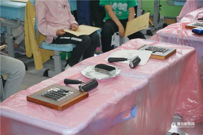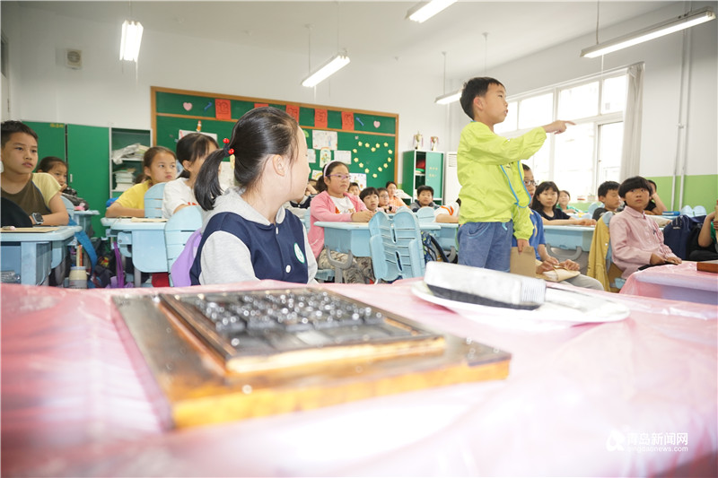 在活字印刷体验课堂,来自青岛时光印记印刷博物馆的宋老师,声情并茂的讲解着活字印刷、古法造纸、雕版印刷等中国传统文化,停留在课本上的“非遗”“活”了起来。互动环节学生分小组比赛捡字、排版、印刷,孩子们学习兴趣浓厚,在快乐中了解、学习中国的传统文化,增强文化自信,民族自豪感。