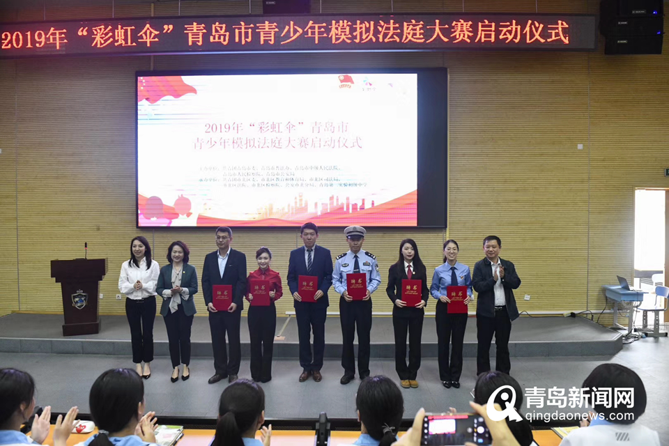 青岛新闻网6月6日讯(记者 姜红翠 通讯员 吴晓菲)6月6日下午,2019年“彩虹伞”青岛市青少年模拟法庭大赛启动仪式在青岛第二实验初级中学举行。团市委、市司法局、市中级人民法院、市人民检察院、市公安局、市北区等有关单位领导和各区、市青少年法治宣传工作负责同志、中学生代表200余人参加活动。