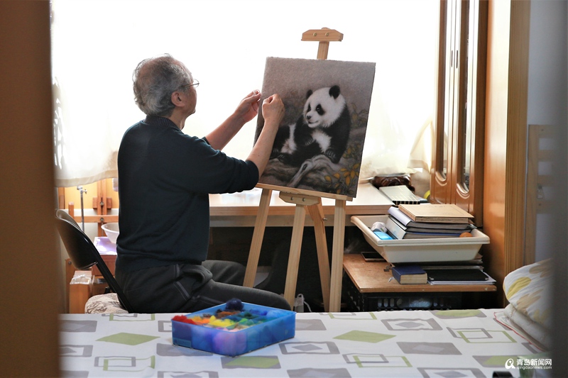 做毛绒画后,刘学山更是有韧劲儿,用妻子谭玉梅的话来说:“早上8点多往画板前一坐,不叫他,都不知道吃饭。”