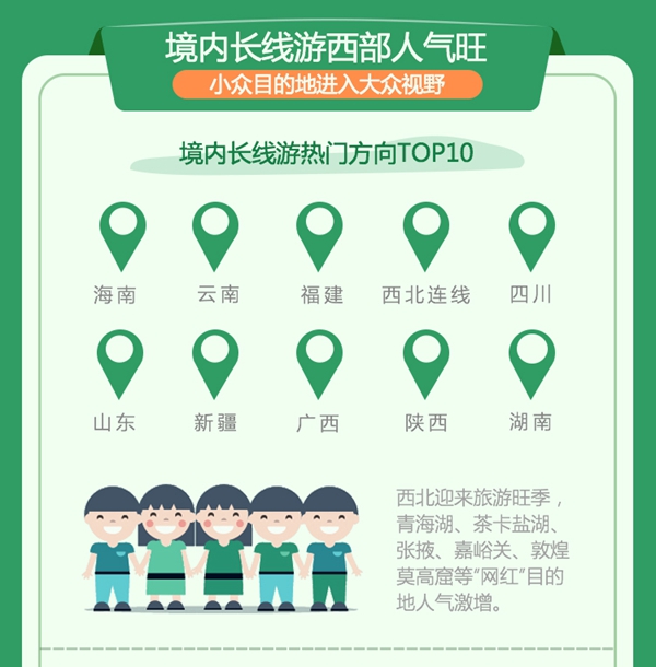 途牛旅游网大数据显示,端午出游前十名热门方向分别为海南、云南、福建、西北连线、四川、山东、新疆、广西、陕西、湖南。自5月以来,西部尤其是西北方向目的地逐渐迎来出游最佳时节,甘肃、青海、新疆、西藏等地旅游升温明显。西北“网红”目的地如青海湖、茶卡盐湖、张掖、嘉峪关、敦煌莫高窟等人气激增。