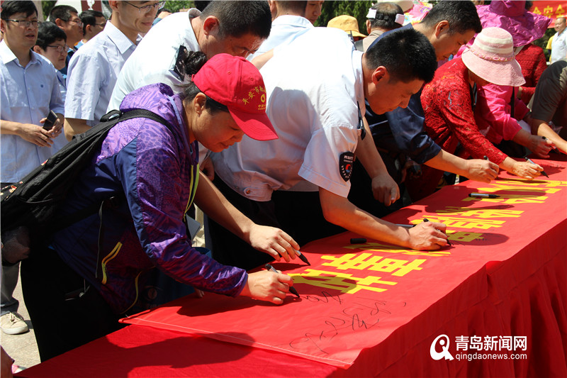 此外在妙趣横生的安全文艺小演出期间,穿插进行“安全知识知多少”有奖抢答。发放《安全生产法》、《安全知识手册》、《市南区居民安全常识十个要牢记》、《防灾减灾从我做起》、《燃气安全须知》等安全法规及安全相关宣传品2000余份。参与活动人员在活动主题横幅上进行了争做安全卫士签名。