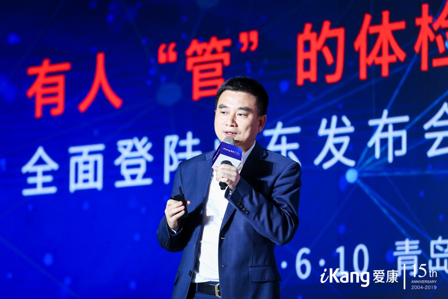 2019年6月10日,正值博鳌亚洲论坛全球健康论坛首届大会在青岛召开之际,本次大会的铂金合作伙伴爱康集团宣布有人“管”的体检2.0战略全面登陆山东。爱康将进一步贯彻iKangAI+计划iKangNetwork+计划,深化人工智能和精准医疗在健康管理领域的应用,并联合山东当地公立医院成立体检医联体联盟,为更多用户带来的一站式高品质健康管理服务。(上图为爱康集团创始人、董事长兼CEO张黎刚现场解读有人管的体检2.0战略)