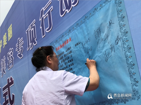 启动仪式上,市、区两级卫生健康监督机构监督员进行了集体宣誓,市医学会医学美学与美容学分会向全市美容整形从业者发出依法执业倡议,医疗美容机构和从业人员代表作依法职业承诺。市公安、市场监管、医保等部门负责同志出席启动仪式。胶州、平度、莱西市分会场启动仪式同步举行,打击非法医疗美容专项行动同步展开。