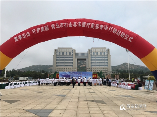 青岛新闻网6月14日讯 (记者张萍)今天上午,青岛市打击非法医疗美容专项行动启动仪式在崂山区世纪广场举行。青岛新闻网记者现场获悉,从即日起至9月底,市、区卫生健康部门管理人员、卫生监督执法人员、医疗美容技术专家、质控专家组成联合检查组,对全市开展医疗美容的医疗机构进行全覆盖监督检查。