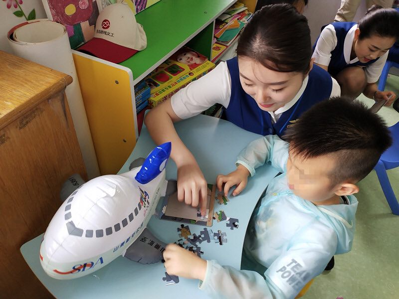 青岛新闻网6月14日讯 今天,山东航空客舱部青岛大队乘务五中队边咏雯鲁雁班组来到了青岛市残联协会,看望慰问康复中心的自闭症儿童,通过交流,游戏等方面逐渐打开孩子们的内心,使他们在一定程度上的敞开心扉,也通过这种志愿者的活动可以积极传递厚道山航文化精神。