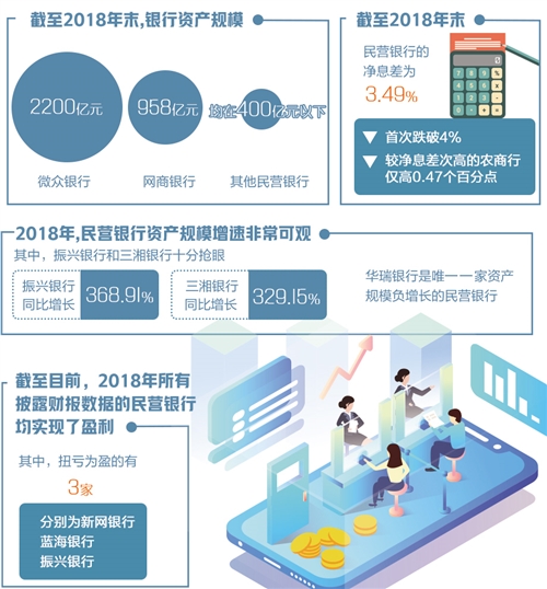 自2014年微众银行等5家民营银行作为首批试点银行获批筹建算起,到目前已有5年时间。“各家民营银行成立时间不同,业绩也相差较大。从2018年年报数据来看,已经公布业绩的各家民营银行均实现了盈利。”融360大数据研究院分析师杨慧敏说。