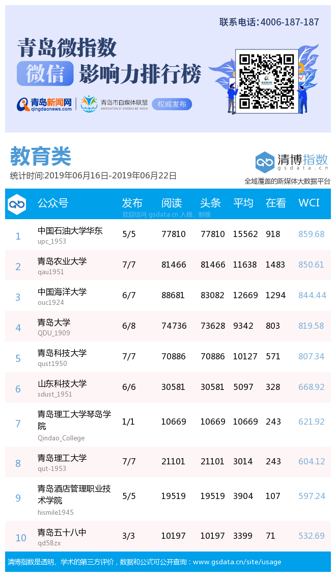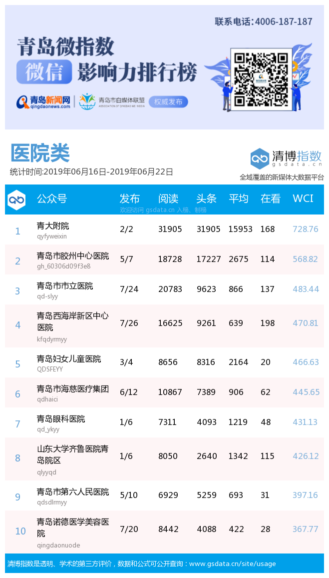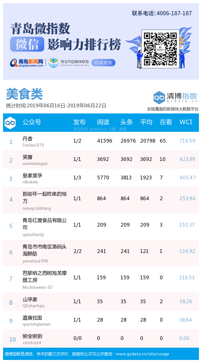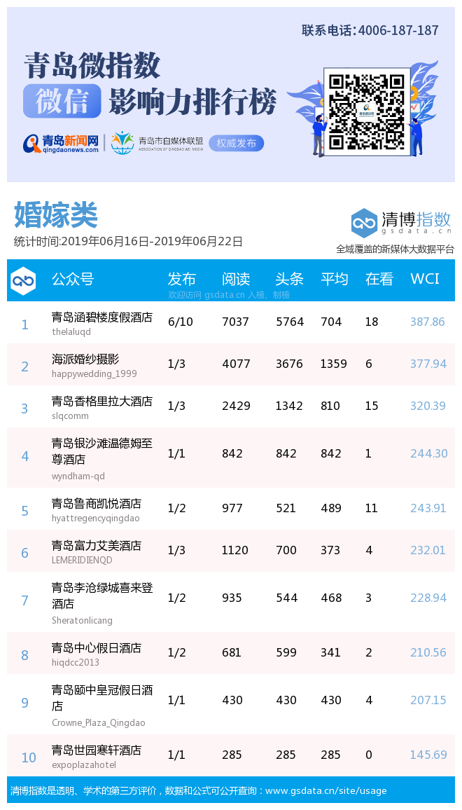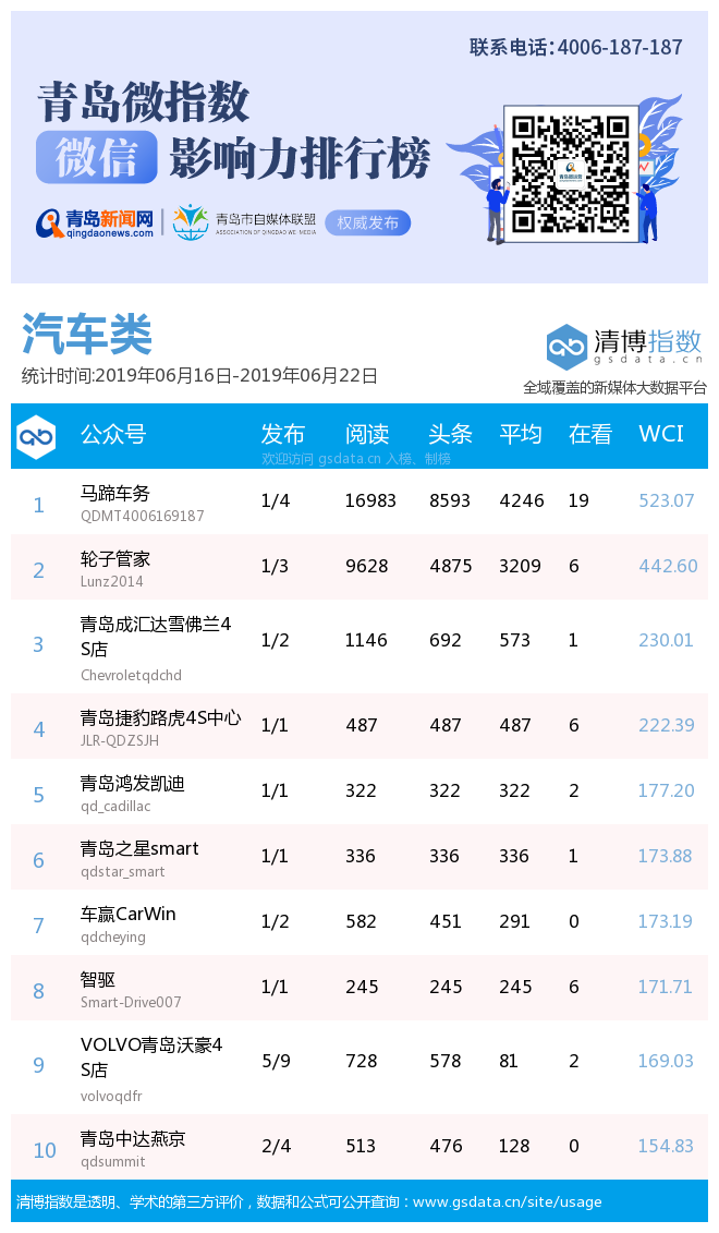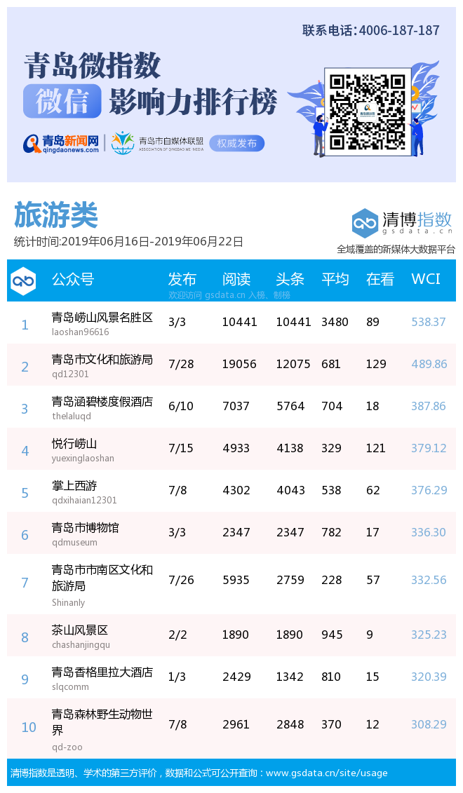 3、本次榜单收录了青岛14个行业微信公众号,如您的账号暂未收录,可联系4006-187-187。