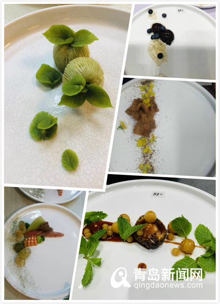 来自青岛开海美食餐饮公司的钟学娇烹制的“苹果酥、老酥肉、巧克力慕斯、石老人海景”四道菜品创意十足,在食材、色彩、营养搭配上非常出色,受到评委的认可,并拿到了第五名的好成绩。