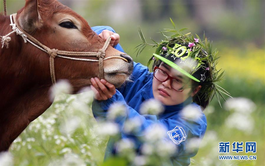 2016年4月5日,在广西桂林市恭城瑶族自治县晓山村,蒋艳给村民的牛做检查。1991年出生的蒋艳2015年从广西大学动物医学专业毕业,现负责恭城县嘉会镇8个村庄共万余头牲口的防疫和屠宰市场的检疫工作。她说,虽然城市条件好、工资高,但毕竟专业不对口,她更希望能够将所学用于工作。青年兴则国家兴,青年强则国家强。在我国广袤的土地上,激扬着热情与活力的青年们正以蓬勃向上之力,在平凡的岗位中挥洒着汗水,在自我奉献中展现人生价值。新华社发(文月 摄)