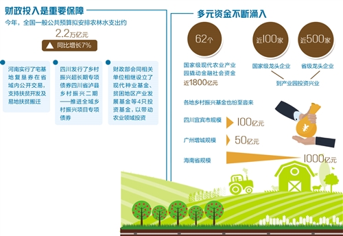 据了解,财政部、中国人民银行已分别出台了建立健全乡村振兴多元投入保障制度、金融服务乡村振兴的指导意见,自然资源部出台了新增耕地指标国家统筹、增减挂钩节余指标跨省域调剂政策,拓宽了“三农”投融资渠道。